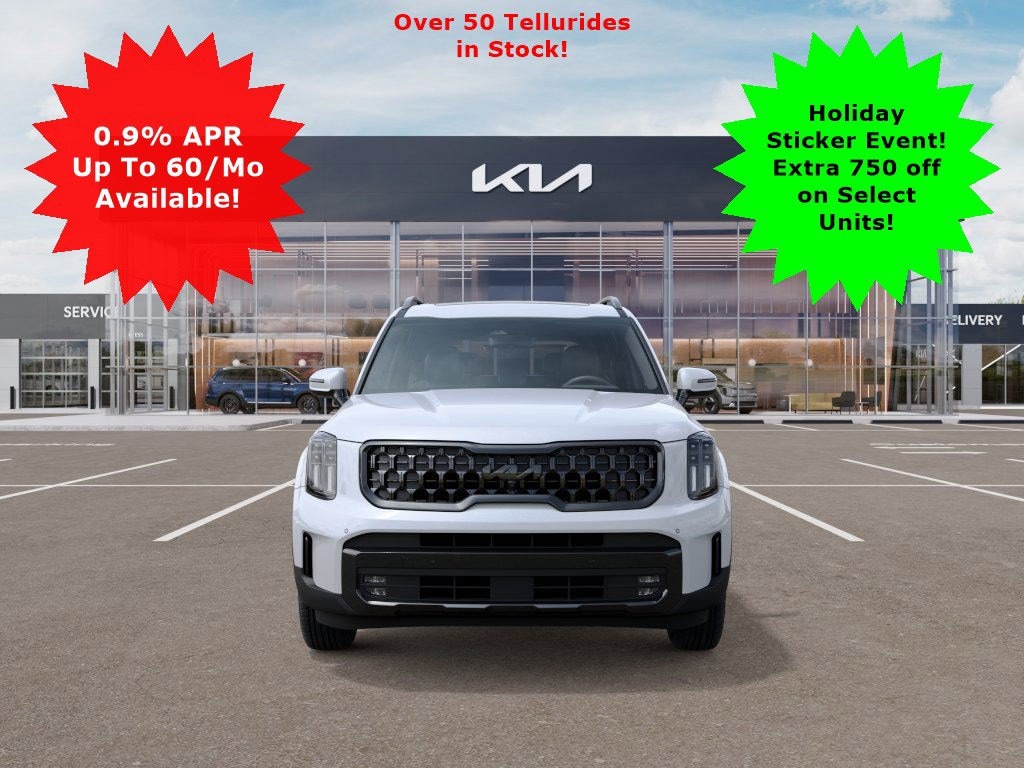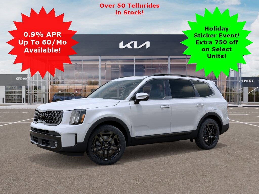 Our 2025 Kia Telluride SX Prestige X-Line AWD in Glacial White Pearl puts a feeling of adventure into practically every trip. Motivated by a 3.8 Liter V6 generating 291hp for an 8 Speed Automatic transmission that puts muscular capability at your command. Also able to return nearly 23mpg on the highway, this All Wheel Drive SUV boasts increased ground clearance and a center-locking differential to help answer the call of the wild. Our Kia combines style and substance by showing off rugged X-Line details, dual sunroofs, LED lighting, fog lamps, gloss-black 20-inch wheels, a hands-free liftgate, and high-utility roof rails.