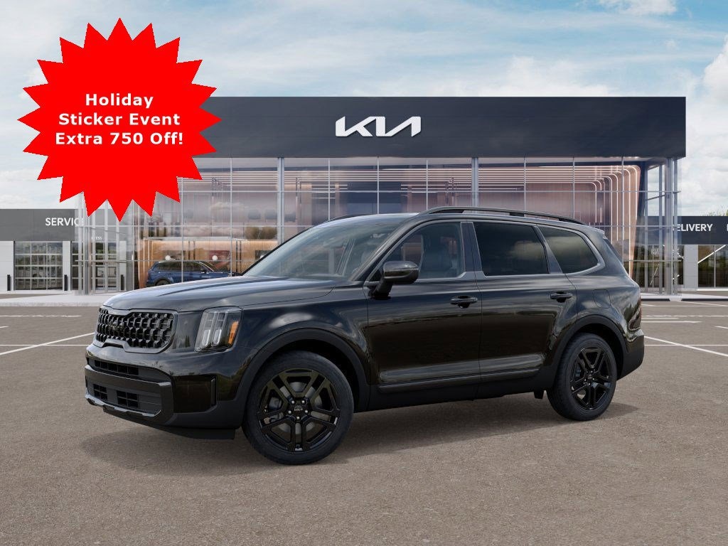 With all the luxury and refinement you crave, our family-friendly 2025 Kia Telluride EX X-Line AWD is brought to you in Ebony Black! Powered by a 3.8 Liter V6 offering 291hp to an 8 Speed Automatic transmission with Drive Mode Select. This All Wheel Drive SUV also hustles you over challenging terrain with a center-locking differential and self-leveling rear suspension, and it scores nearly 24mpg on the highway. Aggressive and impressive, our Telluride travels in style with LED lighting, a power sunroof, 20-inch gloss-black wheels, high-utility roof rails, a hands-free liftgate, and exciting X-Line details.