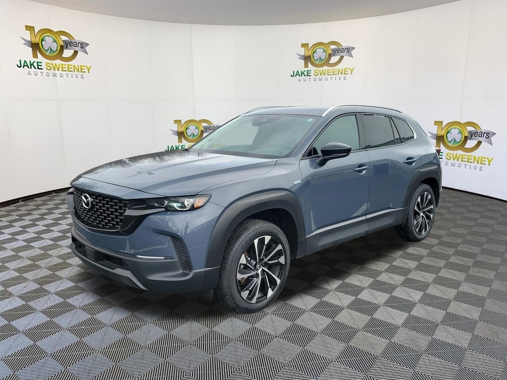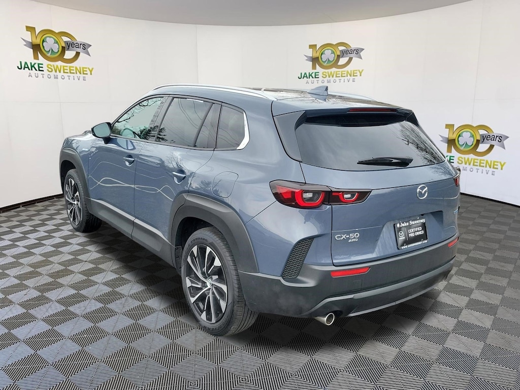 Sporty, sophisticated, and electrified, our Accident Free, Low Mileage 2025 Mazda CX-50 Hybrid Premium Plus eAWD makes a bold impression with dynamic design and sleek aerodynamics in Polymetal Gray Metallic! Powered by a 2.5 Liter 4 Cylinder paired with three Electric Motors for a combined 219hp to an advanced CVT with multiple drive modes. Thanks to the responsive suspension, you can seek out twisty back roads confidently, and this All Wheel Drive SUV scores nearly 38mpg on the highway. Bold and sophisticated, our Premium features adaptive front LED lighting, a power liftgate, heated power mirrors, a sunroof, dual exhaust outlets, and eye-catching alloy wheels.